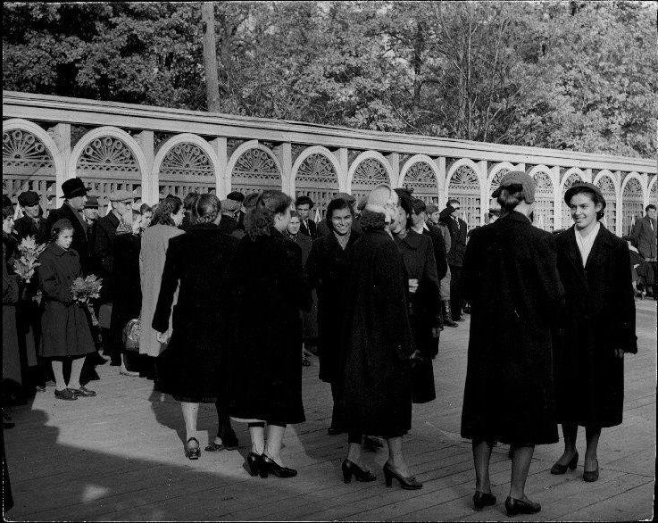 На фото — сквер у Володарского моста, который в те времена был частью парка Куракина дача. Позже здесь появится отдельный автомобильный проезд и сквер у нового Воладарского моста останется сам по себе.