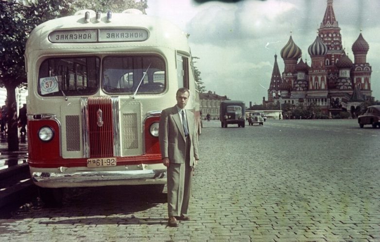 15. Чешский турист сфотографировался на фоне автобуса ЗиС-155 на Красной площади.