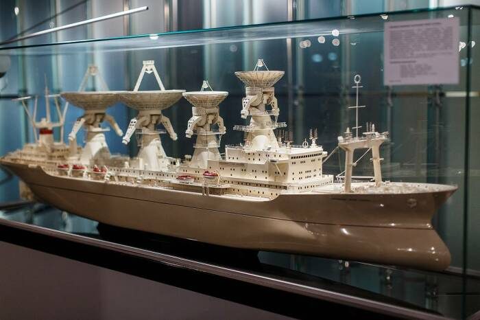 Изюминкой корабля стали четыре огромные тарелки, которые возвышались над палубой — это были параболические антенны. Одна из них, которая располагалась на носу, направлялась на спутник-ретранслятор, чтобы вести бесперебойную связь между судном и центром управления полётом на материке. Другие три связывались непосредственно с теми космическими кораблями, которые бороздили просторы галактики.