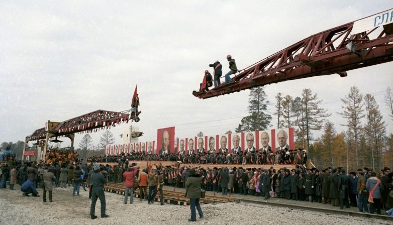Укладка «золотого» звена на станции Куанда, Каларский район, Забайкальский край, 1 октября 1984 год.