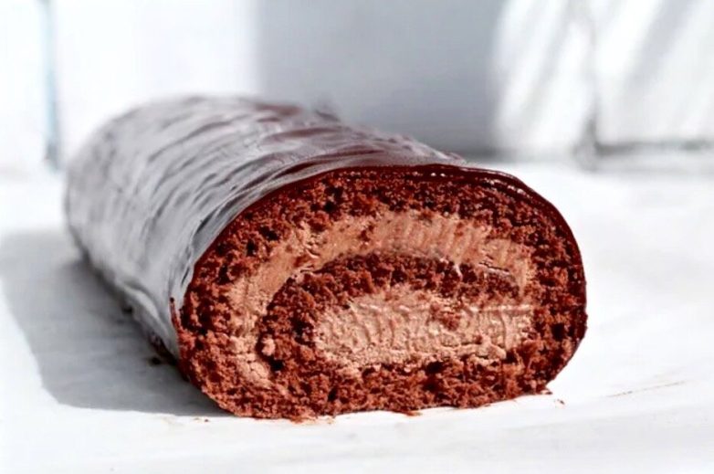 Растопите шоколад и смешайте его с мягким сливочным маслом. Готовую глазурь нанесите на рулет и поставьте рулет в холодильник на 1 час.