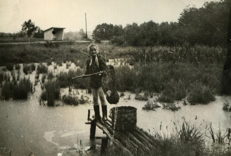 Чук и Гек никак не относятся к деревенской детворе — москвичи они. А какая красавица девушка с коромыслом!