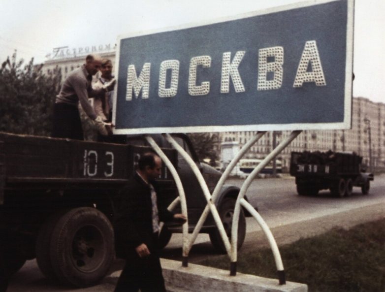 Москва расширяется и меняет свои границы — снятие указателя на Можайском шоссе (часть современного Кутузовского проспекта).