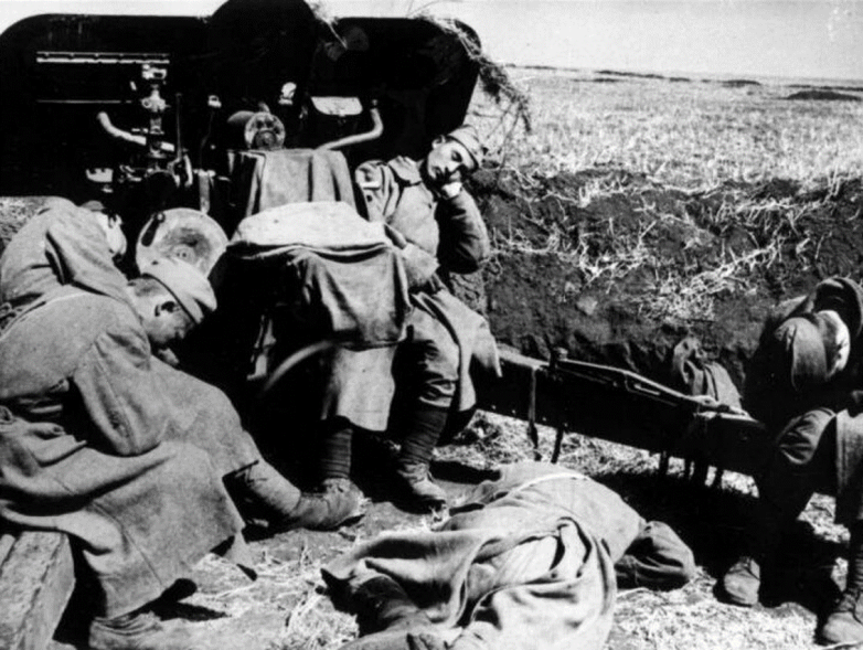 После марша, уже на подступах к передовой, силы солдат были на исходе. Многие даже думали про себя, что уж пусть лучше смерть или ранение, лишь бы прекратились эти бесконечные страдания.