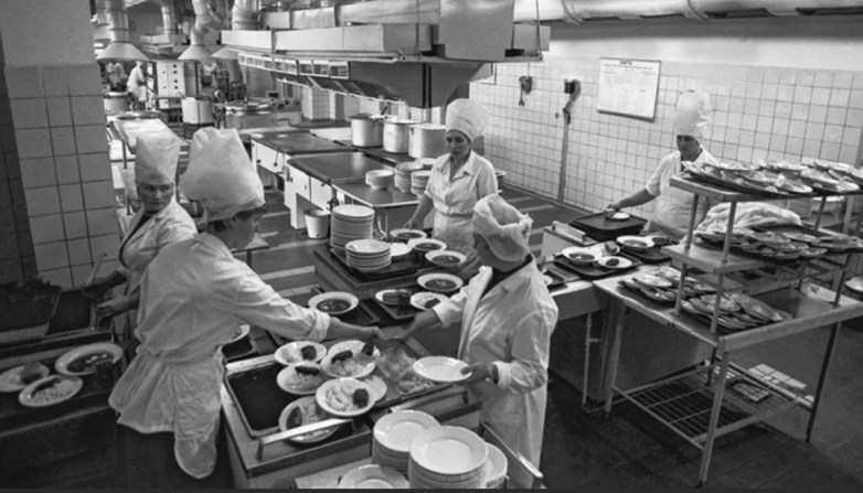Большинство людей в городах работали на заводах и фабриках, а не в офисах, как сейчас. В заводских столовых все стоило намного дешевле, чем в городских, да и контроль за качеством там был лучше. Везде можно было купить комплексный обед, который стоил 60 копеек.
