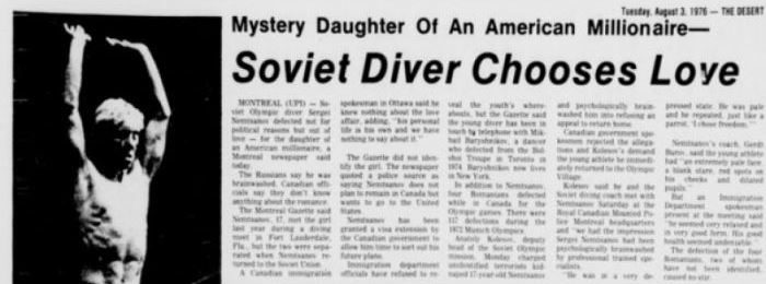 Были и такие, кто, вкусив прелестей западной жизни, решил вернуться на родину. У Сергея Немцанова, советского мастера спорта по прыжкам в воду, свой рекорд — его побег в Америку в далеком 1976 году продлился всего три недели.