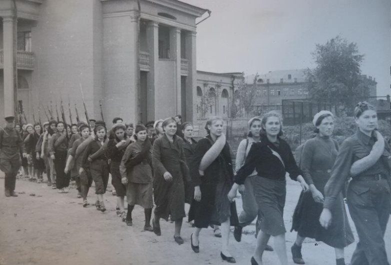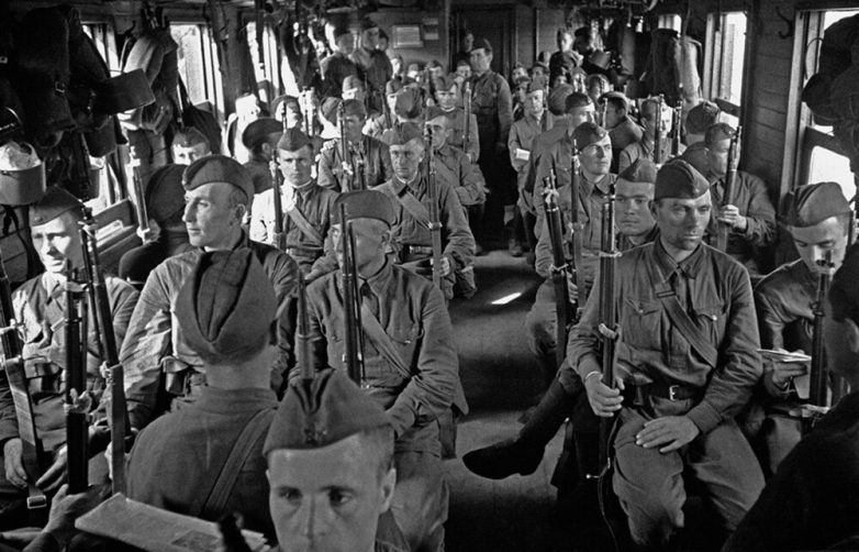 На электричке на фронт — интересно, раньше не слышал о таком. Хотя например в Одессе трамваи использовались — было фото, как трамвай тянет платформу с зениткой. Раздача противогазов — видимо было опасение, что враг может таки применить ОВ. Хотя была какая-то договорённость о взаимном неприменении. Женщины конвоируют пленных вилами и ухватом… ндааа… Довоевались однако! Вообще все снимки впечатляющие, очень интересно, спасибо!