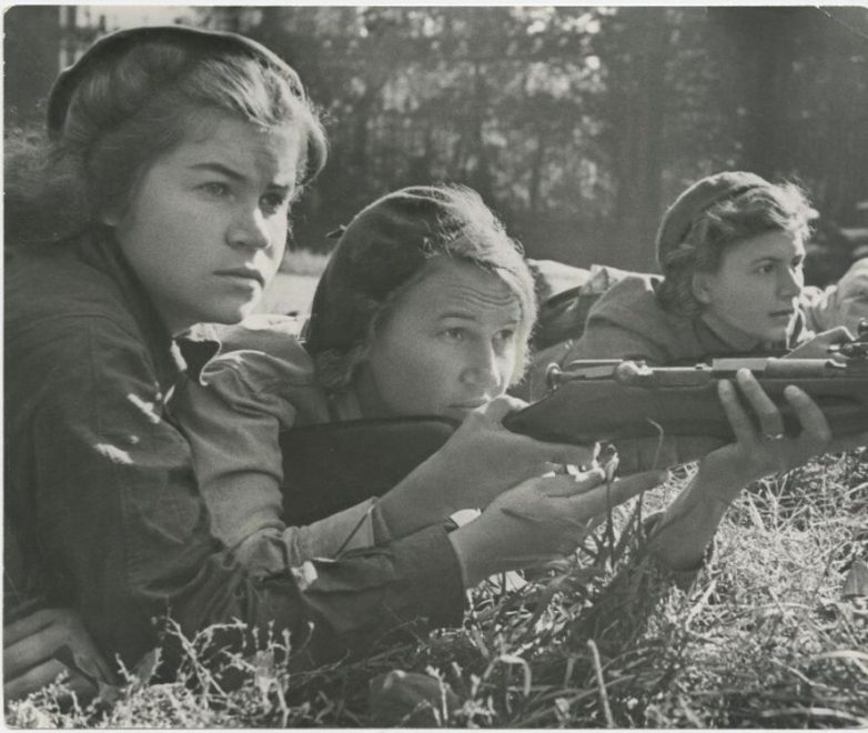 22. Летчицы 588-го ночного легкобомбардировочного авиационного полка. 1942 год. Автор: Евгений Халдей. Станица Ассиновская