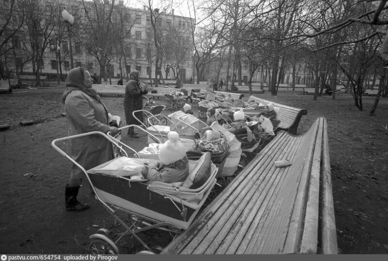 В комментариях к фото пишут, что за небольшую денюжку мамы оставляли коляски с детьми на попечение бабушкам, а сами бегали по магазинам на Цветном.