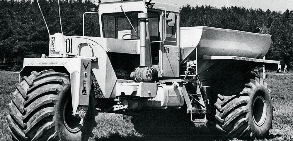 — Началась эта история во время поездки заместителя Председателя Совета министров БССР Леонида Ивановича Хитруна в США, где он знакомился с современными методами ведения сельского хозяйства. Вот там он и увидел, как работает BIG A2500 — самоходный разбрасыватель минеральных удобрений. Как человек, хорошо разбиравшийся в вопросах развития сельскохозяйственной отрасли, он сразу понял все преимущества его применения и предложил наладить выпуск аналогичной техники у нас в республике. И когда эту машину привезли на выставку в Минск, ее передали нам на несколько дней для изучения, а по сути — для копирования конструкции с целью последующего освоения в производстве.