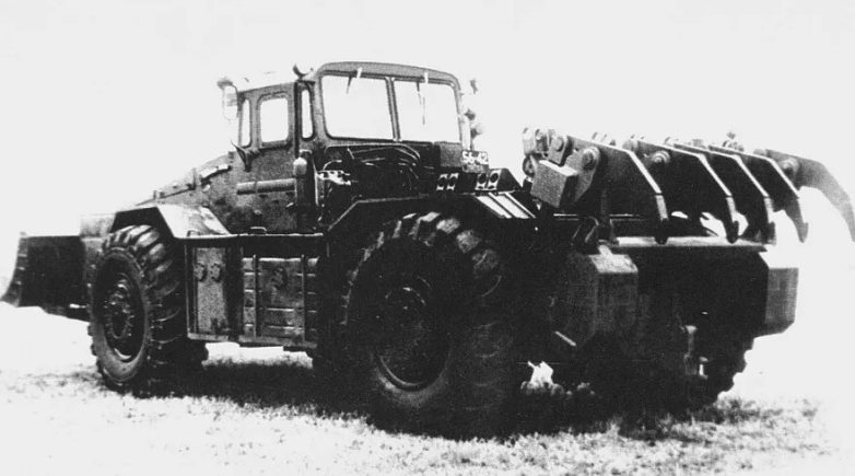 Удлиненное шасси КЗКТ-538ДП с задней навеской бульдозерного отвала (фото автора)