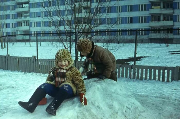 Одними из самых доступных вариантов были вязаные шапки, а также из цигейки, которые чаще всего покупали детишкам. Как правило, выглядели такие головные уборы, мягко говоря, уныло из-за особенностей материала и цветовой палитры. Самой модной считалась леопардовая, да вот только достать её было весьма проблематично, поэтому ребятишки довольствовались серыми, коричневыми или песочными вариантами. А чтобы шапка прочно держалась на голове и не потерялась во время игр, к ней пришивалась резинка, шнурки или лямки, которые завязывались под подбородком.