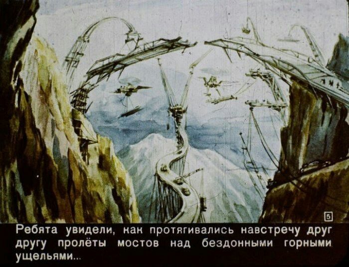 Еще один прогноз, который можно найти в старом советском диафильме — это строительство подвесных мостов в таких местах, где опорные варианты поставить невозможно. Прежде всего, речь идёт о переправах через ущелья или горную местность. И если для советских времён это было своего рода новаторством, то сегодня такими мостами никого не удивить: к примеру, их периодически строят в китайских провинциях, известных соответствующим ландшафтом, и масштабы этих объектов поражает не меньше, чем отсутствие опор.