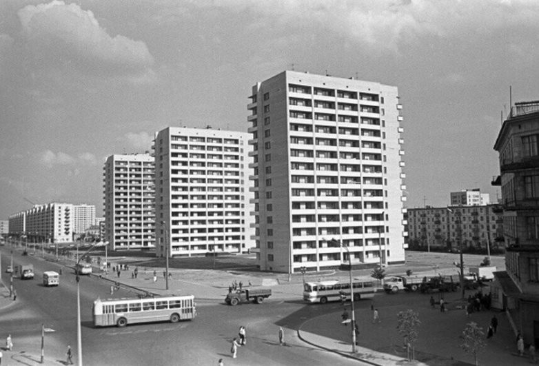 22. Недавно построенный универмаг «Московский» и дома-близнецы около площади Победы.