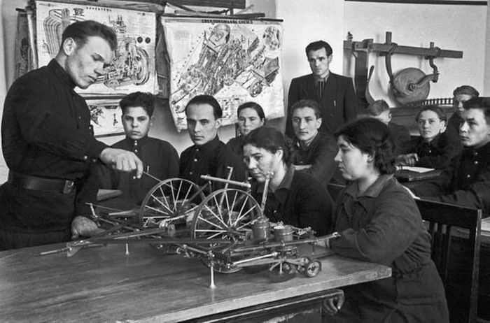 Как таковое платное (в прямом смысле) образование было введено при Сталине накануне Великой Отечественной войны. В октябре 1940 года было принято постановление №638. Согласно его тексту, в СССР отменялось бесплатное образование для высших учебных учреждений. Тот же декрет делал платным еще и три класса старшей школы (8, 9 и 10). Причём ставки оплаты за обучения были достаточно высокими (хотя и не неподъёмными). Так, если родители хотели отправить ребёнка в старшую школу, то им пришлось бы заплатить за год подготовки 150-200 рублей. Год учёбы в ВУЗах был закономерным образом еще дороже: 300-400 рублей. Для понимания, средняя зарплата по СССР среди рабочих и крестьян в те годы составляла 100-200 рублей. Но зачем это было сделано? На самом деле всё просто: с конца 1930-х годов Советский Союз испытывал дефицит кадров из числа выпускников профессиональных училищ (ремесленных и фабрично-заводских). Страна остро нуждалась в людях «самых пролетарских» профессий. Поэтому платным обучением молодёжь хотели «загнать» профессионально-технические училища.