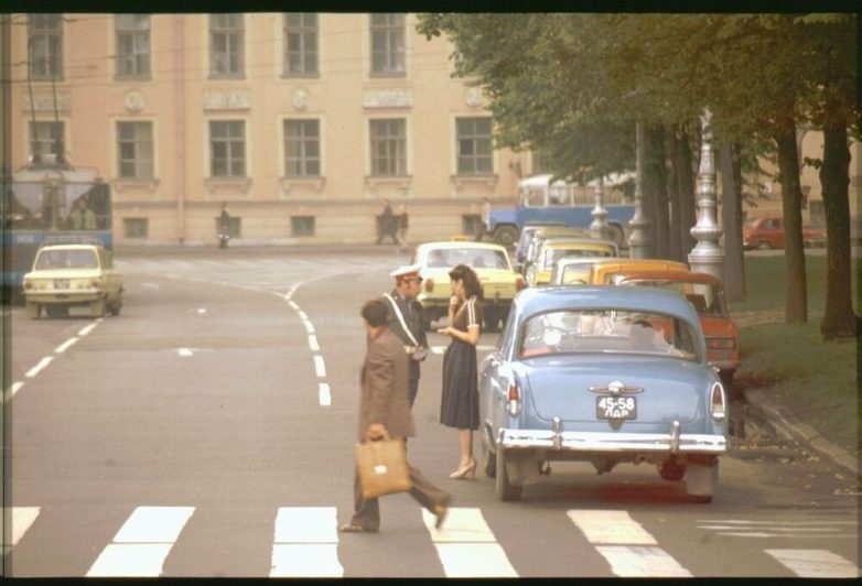 22. На Исаакиевской площади гаишник остановил 21-ю Волгу. А за рулём оказалась девушка — нечастое явление для тех лет.
