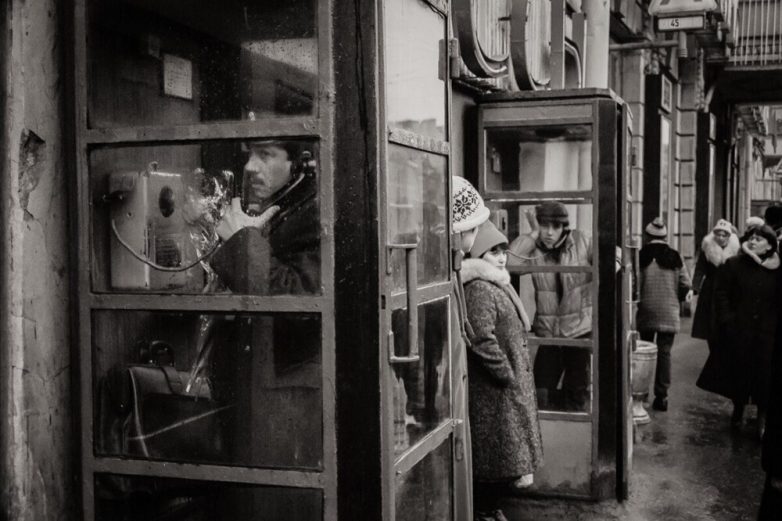 17. Кадр прямо как из фильма — слишком любопытные выражения лиц и эмоции у многих героев. Герой снимка звонит из таксофона у кинотеатра «Октябрь»