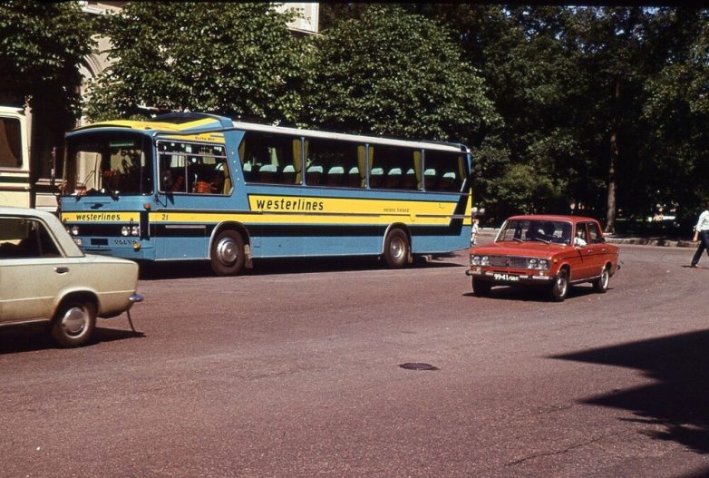6. Улица Бродского (ныне — Михайловская) у площади Искусств и модный финский автобус.