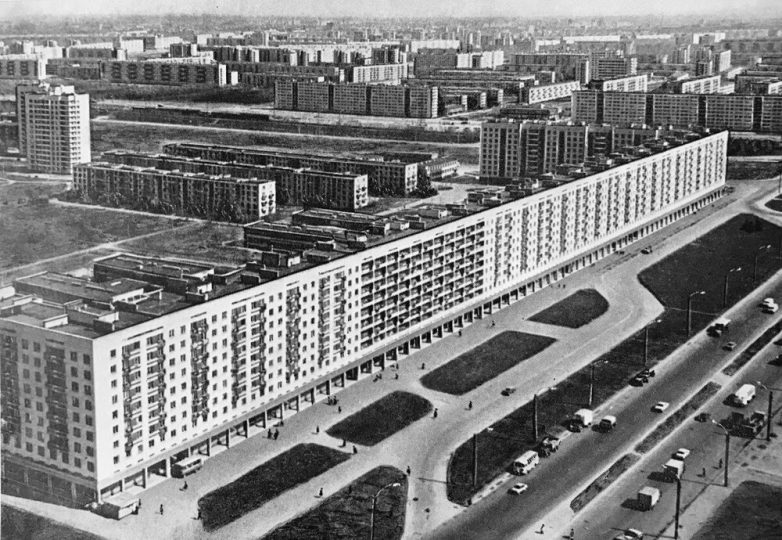 2. Новые районы Ленинграда: вид на улицу Асафьева. Справа — дом 38 корпус 2 по проспекту Луначарского. Слева — дома 8 и 10 по Асафьева.