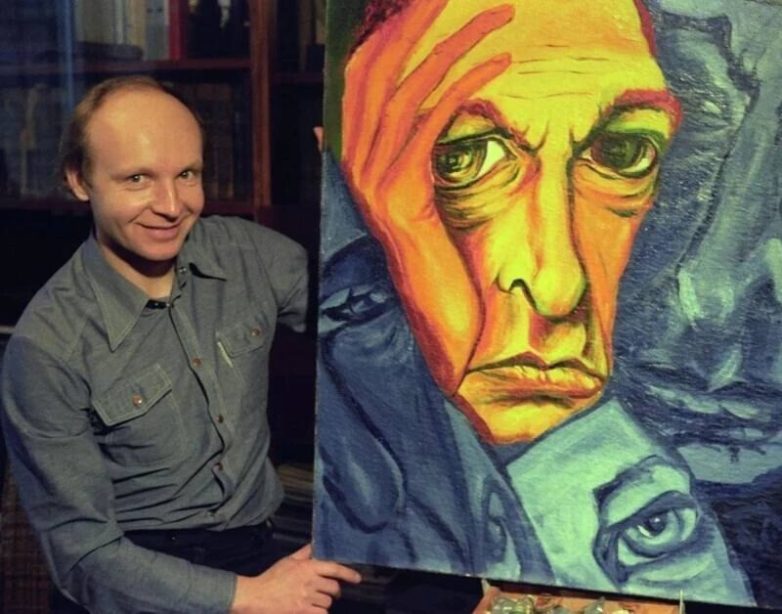 13. 10. Андрей Мягков у себя дома с картиной «Портрет Олега Ефремова», 1978 год.
