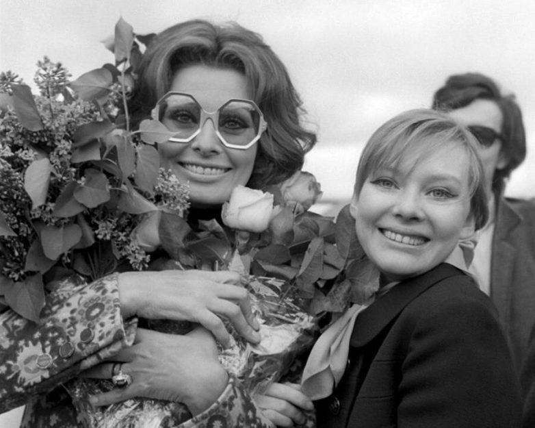 2. Софи Лорен и Людмила Савельева, 1970 год. Обе актрисы снимались в фильме «Подсолнухи», им достались главные роли в картине.