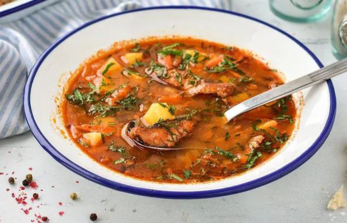 А вот когда наступали очень голодные времена, то на помощь приходила консервированная килька в томатном соусе. Стоила она копейки, но из нее можно было наварить 5-литровую кастрюлю супа. Одна банка красиво окрашивала бульон в томатный цвет, оставалась только добавить побольше овощей и крупы. Суп был доступным для всех слоев советского населения.