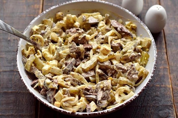 В Советском Союзе обожали готовить салаты. Существовало много самых разных вариантов, начиная с «Мимозы» и заканчивая классическим «Оливье». Но отдельную ступень занимал салат с печенью, который назывался «Пассажирский». Изначально его готовили исключительно в вагонах-ресторанах, но потом он быстро перекочевал в домашние кухни, что неудивительно, учитывая простоту приготовления и доступность ингредиентов.