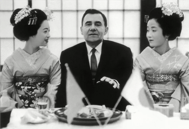 Министр иностранных дел СССР Андрей Громыко с гейшами во время первого посещения Японии по приглашению правительства, 1962 год.