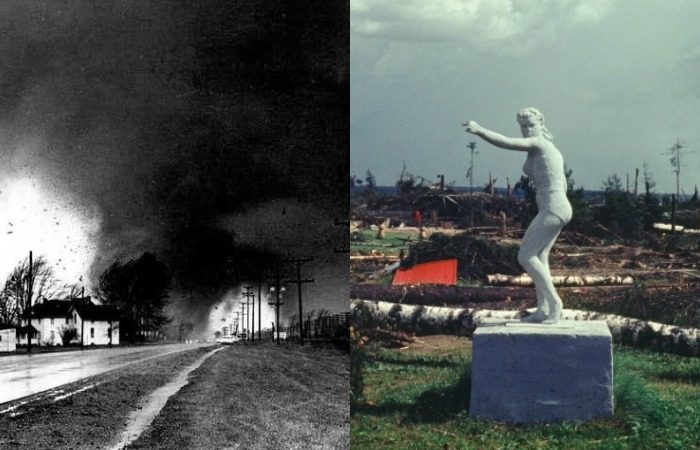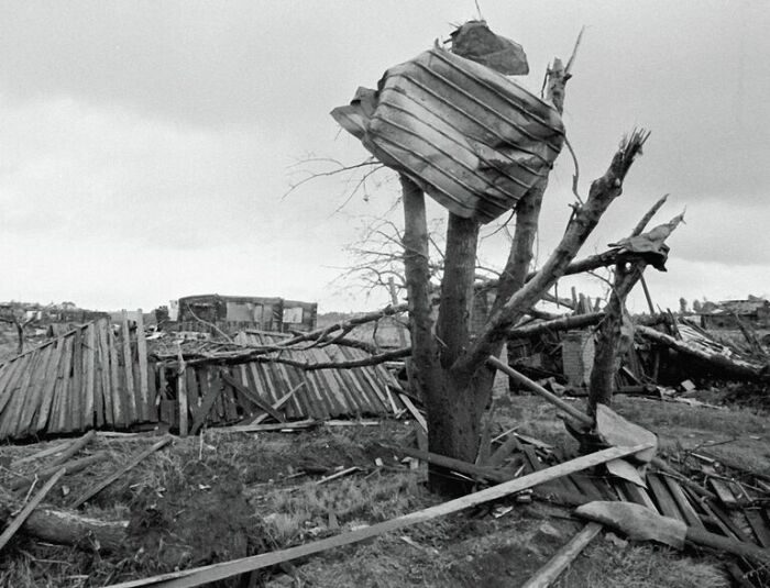 Я видел последствия этого торнадо. Трудно представить какая разрушительная в нем мощь когда видиш скрученные словно из проволоки высоковольтные опоры линий электро передач, опрокинутые ж / д цистерныи клодбище без памятников и крестов с вырваными оградами.