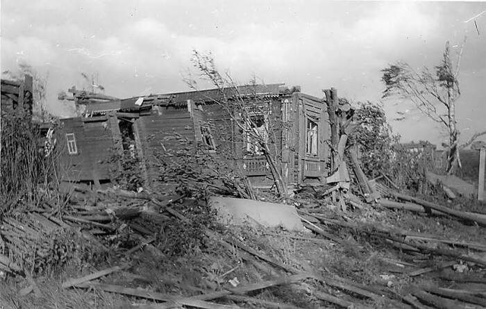 За пару минут стихия унесла, по разным оценкам, до сотни человеческих жизней, какое-то число людей признали пропавшими без вести. Сильнее всего досталось пригородам областного центра – деревням с легковесными строениями. Очевидцы рассказывали, что видели в небе коров, целые дома и даже автобусы.