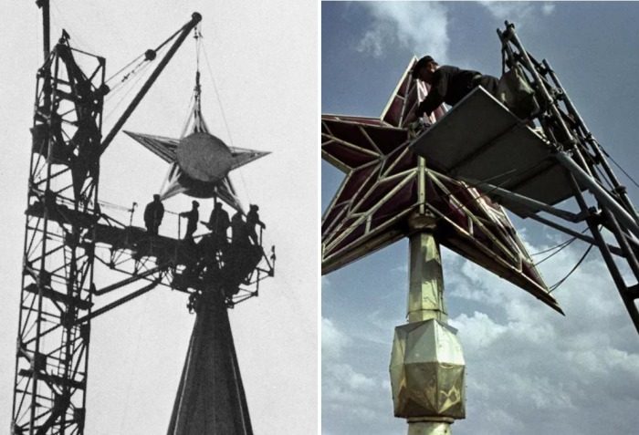 Установка огромных звезд весом в тонну стала сложной инженерной задачей. В 1935 году еще не существовало подходящей подъёмной техники. Башни высокие: от 52 м (Боровицкая) до 72 м (Троицкая), а башенные краны нужной грузоподъёмности в стране не производились. Однако талантливые советские инженеры смогли справиться с проблемой.