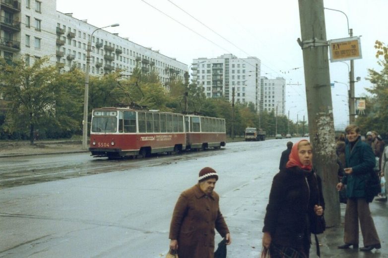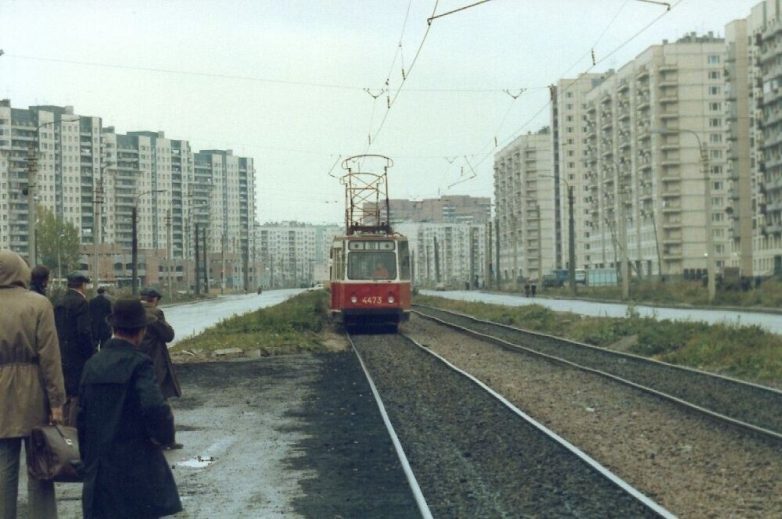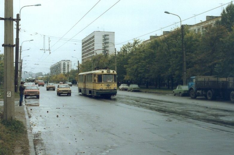20. Перенесёмся на северные окраины (тогда именно окраины) города. Трамвай ЛМ-57 32 маршрута следует по проспекту Науки.