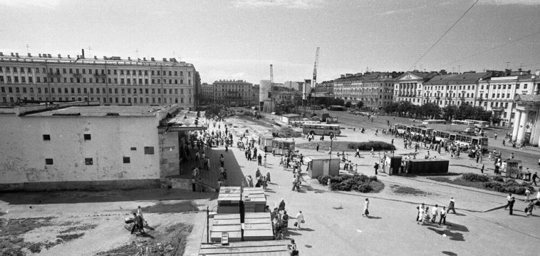 22. А Сенная площадь (тогда площадь Мира) выглядела вот так. На заднем плане видно строительство станции метро «Садовая» и пересадочного узла.