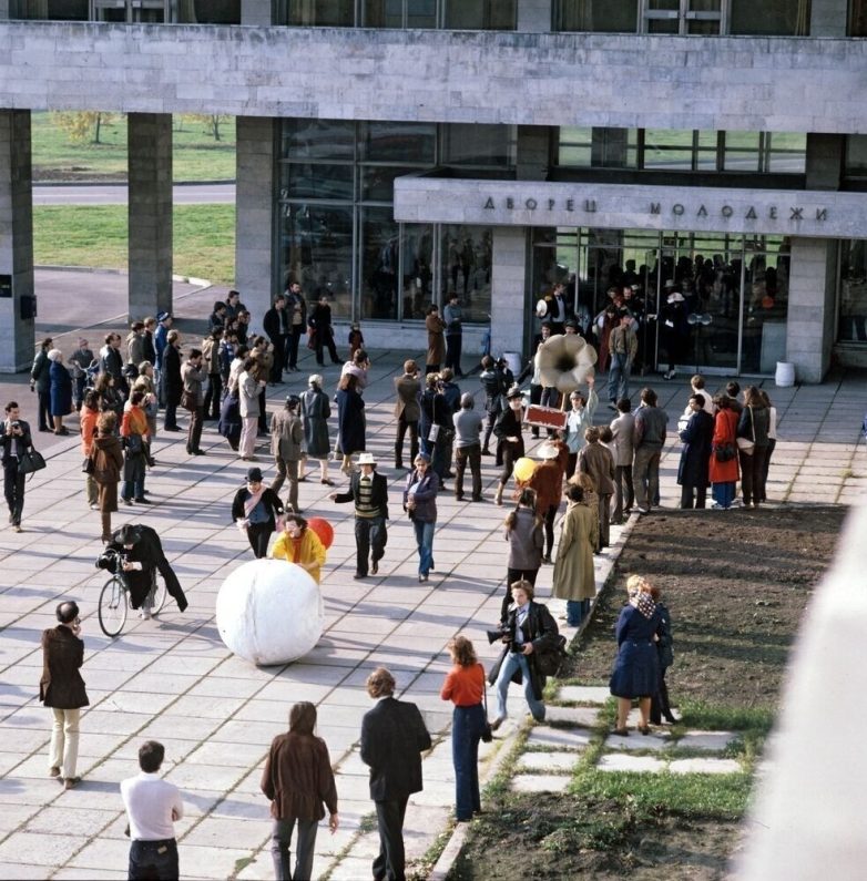 5. Артисты экспериментального театра пантомимы и клоунады «Лицедеи» около Ленинградского дворца молодёжи.