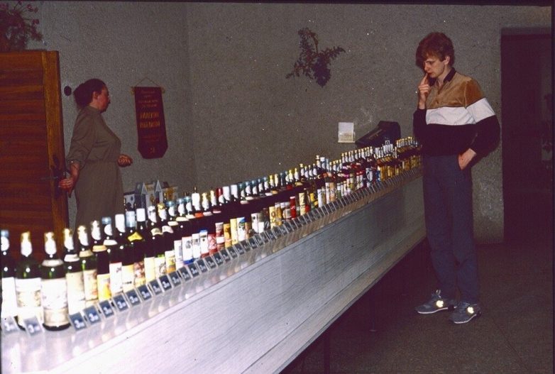 Интересно, а дегустация платная или нет? Сухой закон наверное уже действовал.В Куйбышеве такого не было.Хорошо в Питере жили.Чувак стоит, выбрать не может.Обалдеть.