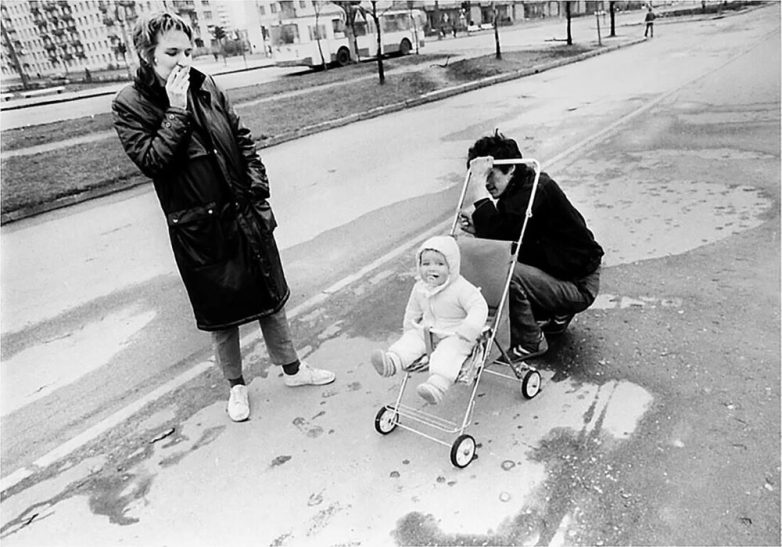 23. Виктор Цой, его жена Марьяна и сын Александр гуляют по проспекту Ветеранов