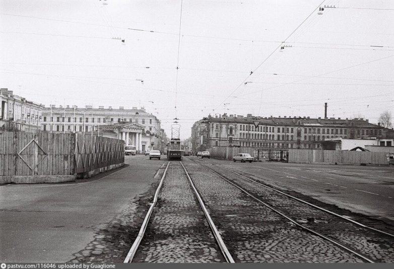 9. Сенная площадь (а тогда — площадь Мира) постепенно обрастает заборами из-за строительства станции метро «Садовая».