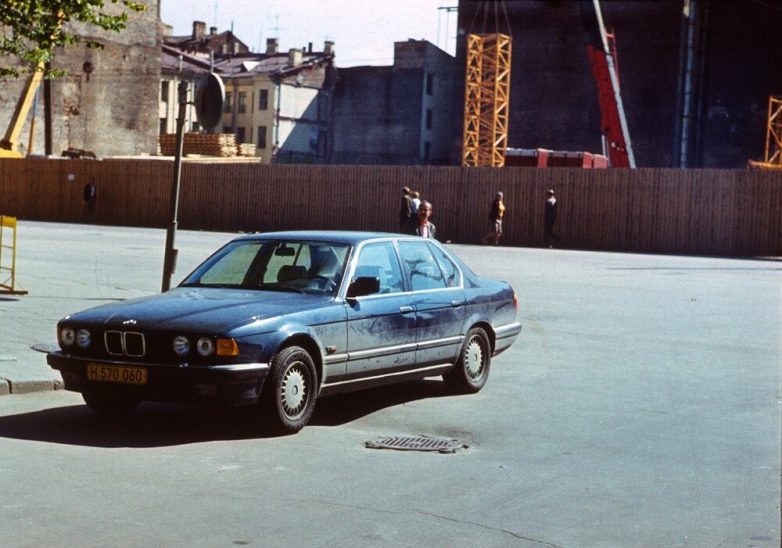 БМВ 7-й серии на иностранных номерах. А позади — снесённый «Англетер»