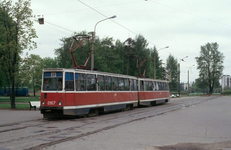 Сцепка из двух КТМ-5 на Пискарёвском проспекте следует по 22 маршруту.