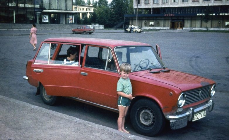 ВАЗ-2102 с чёткими брызговиками около кинотеатра «Невский», что на Народной улице.