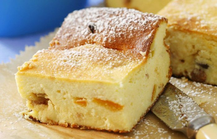 Творожная запеканка готовилась из творога с добавлением манной крупы.
