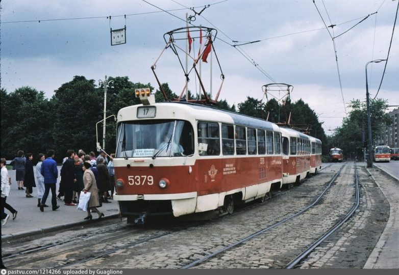 2. Трамвайная остановка «Станция метро ВДНХ» и сцепка сразу из трёх! Татр 17 маршрута.