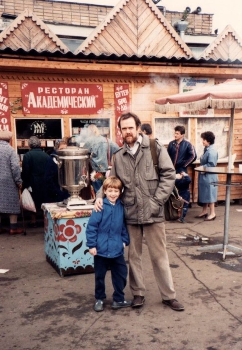 10. Фото на фоне «ресторана» «Академический», где, судя по вывеске, подают бутерброды. Место действия — Черёмушкинский рынок.