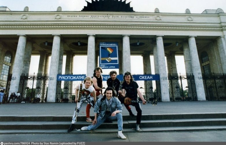 18. Группа «Парк Горького» позирует около входа в Парк Горького.