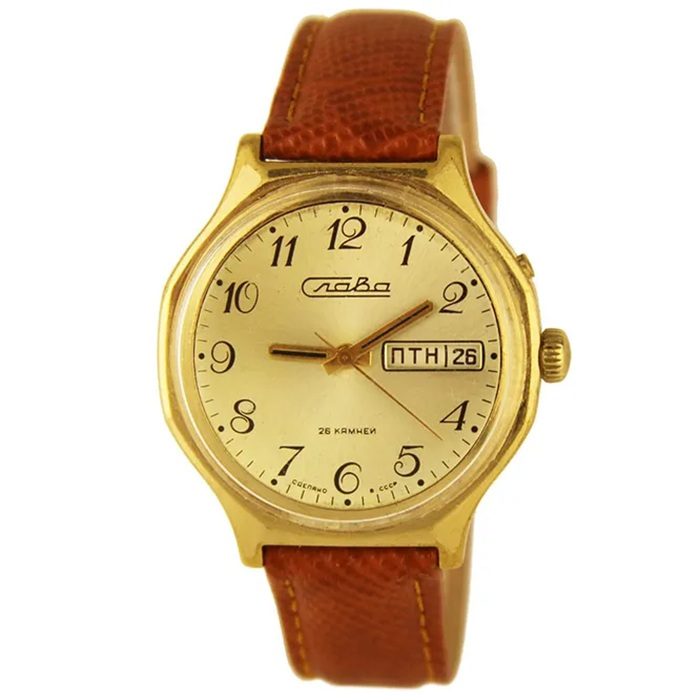 Если говорить о рекордсмене по популярности в Советском Союзе среди наручных часов, то к застойным временам им очевидно была «Слава». Стоили они, конечно, на порядок выше: по информации редакции novate.ru, во второй половине прошлого века их цена постепенно выросла с 20 до 50 рублей. Интересно, что эта модель не просто позиционировалась как народная и ориентированная на широкие массы населения, но и активно экспортировалась — было даже время, когда за рубеж вывозили на продажу каждый второй изготовленный экземпляр.