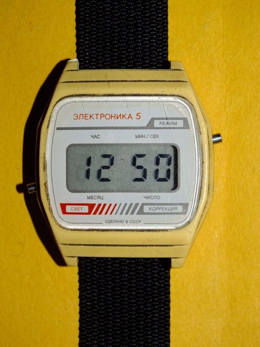 Восьмидесятые годы ХХ столетия стали временем, когда в советских магазинах стали активно появляться электронные часы с пластиковым корпусом, доступные каждому гражданину. Таковыми были, к примеру, «Электроника 5», но особенно интересной является пятая модификация из-за её многофункциональности — часы имели таймер, календарь, будильник и даже подсветку. Стоили они тоже не очень дёшево — в середине 1980-х цена подскочила до 27 рублей. Но это и неудивительно, ведь тогда даже самая простая электроника была дороже, чем точная механика.