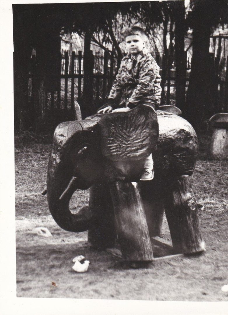 22. Верхом на слоне. Евгений Истомин, 8 лет. Осень 1983, парк Дубки. Неизвестный автор. Сестрорецк.