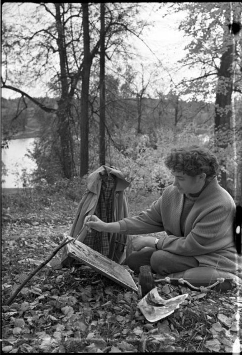 6. Художница на этюдах в усадьбе «Суханово». 1955–1965 годы. Автор: Дмитрий Козлов. Московская область, деревня Суханово.