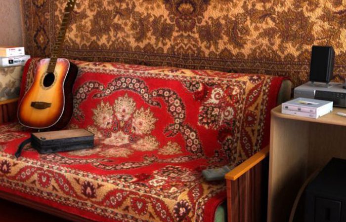 В СССР в мебельных магазинах продавалась однотипные диваны, серванты, кресла и столы. Поэтому интерьер в квартирах был практически одинаковый. Но ковер помогал оживить комнату — яркие восточные узоры и прочий цветочный орнамент придавал «изюминку» интерьеру. Пространство в советских квартирах становилось нарядным и уютным.