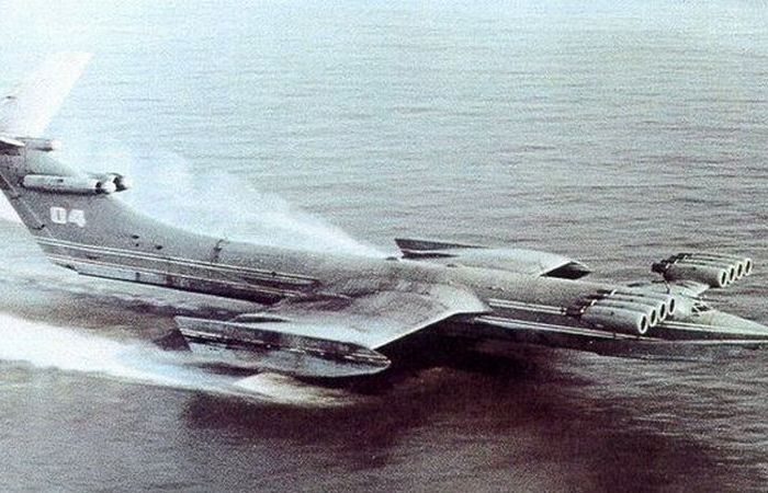 Эта машина не успела даже полноценного названия из-за чего КМ (Корабль-макет) с подачи журналистов стали в шутку расшифровывать не иначе как «Каспийский монстр». Разработка экраноплана КМ началась ещё в середине 1960-х годов. До появления Ан-225 эта машина была самым тяжелым и самым грузоподъемным летательным аппаратом в мире (544 тонны). При этом КМ был ещё и на 8 метров длиннее «Мрии». В движение экраноплан приводился аж 10 двигателями ВД-7! Испытания экспериментального образца проходили до начала 1980-х годов на Каспии (откуда и неофициальное название). В итоге машина разбилась и затонула из-за ошибки пилота, к счастью, экипаж в аварии не пострадал.